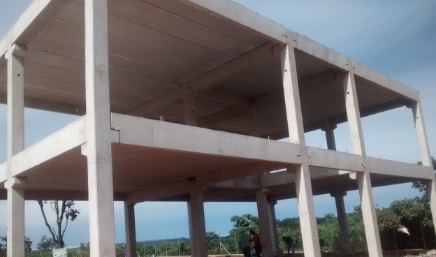 Execução de fundação, fabricação e montagem de estrutura pré-moldada de edifício administrativo da Indústria Farmacêutica Geolab em Anápolis no Estado de Goiás.